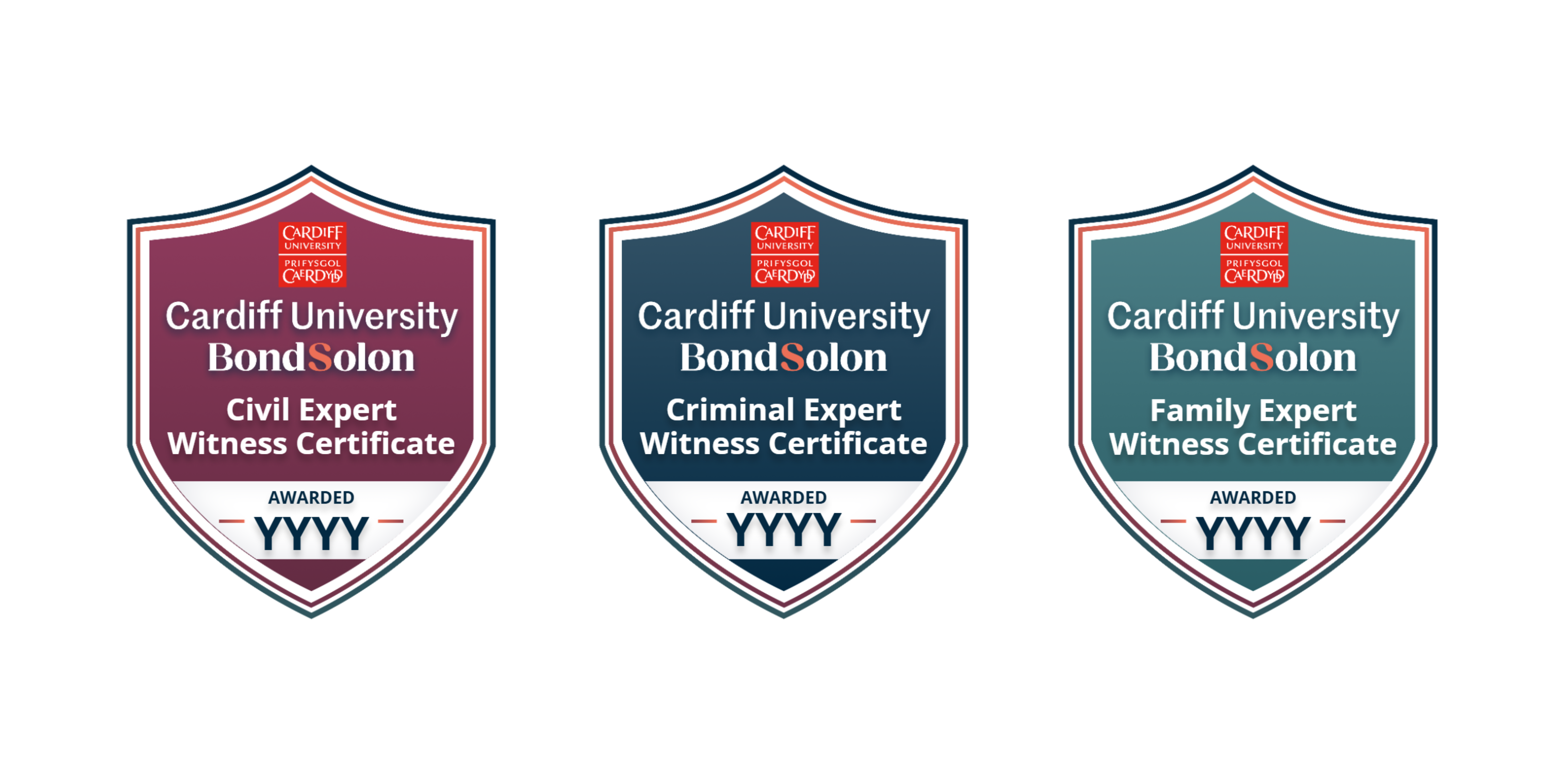 Provided that a pass is reached in all three assessments, the candidate will be awarded the Civil, Criminal or Family Cardiff University Bond Solon (CUBS) Expert Witness Certificate. They will also be provided with the certificate logo and specific wording, which can be used to publicise their achievement.